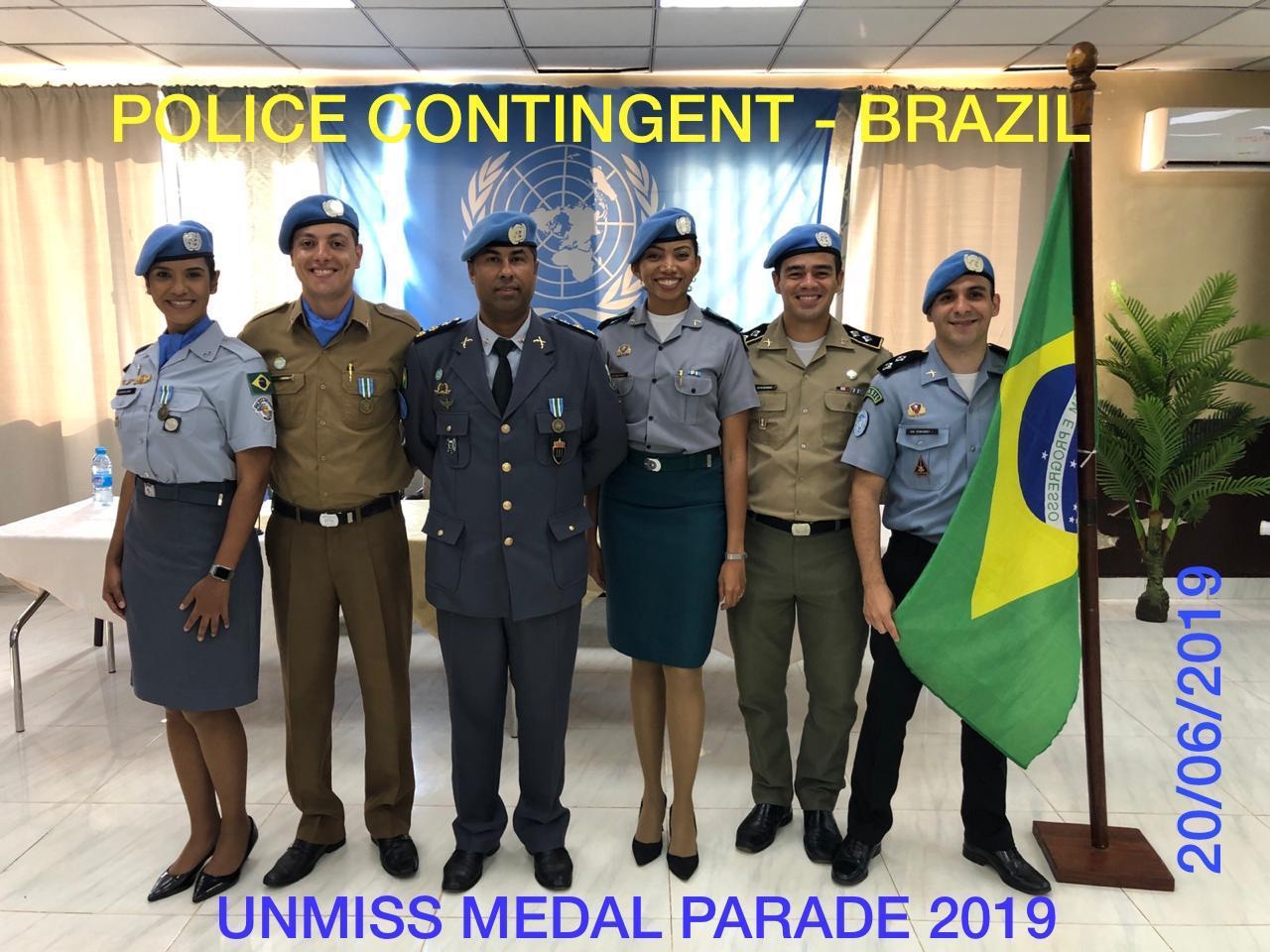 No último dia 20 de junho de 2019, o contingente policial militar brasileiro foi condecorado com a Medalha da ONU pelos bons serviços prestados na Missao de Paz da ONU no Sudao do Sul (UNMISS). Foi realizada uma solenidade conjunta entre os policiais do Brasil, Argentina e Portugal.